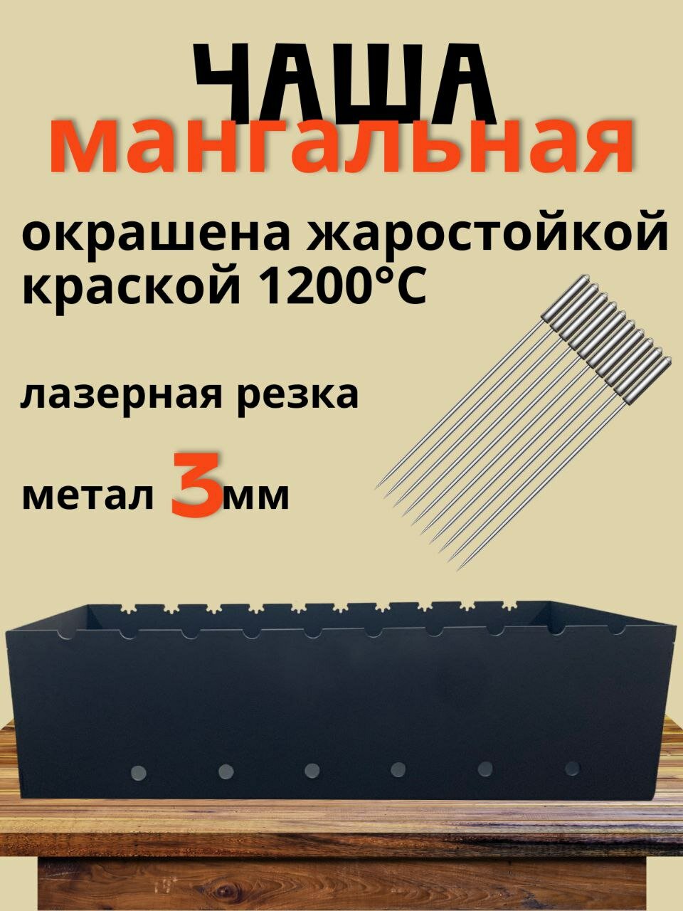 Отзывы на Мангальная чаша, сталь, 60х30х17 см, толщина стенок 3мм, сварная, переносная, черная