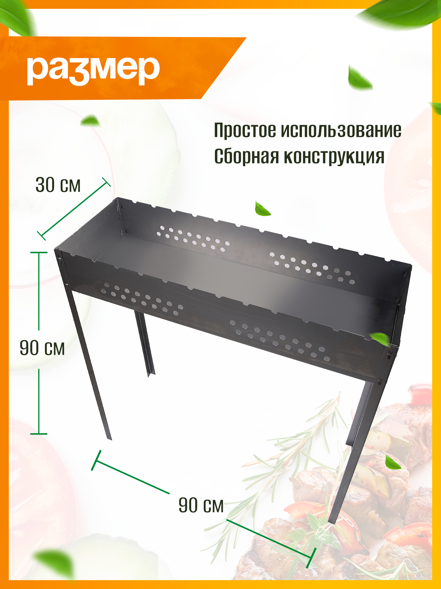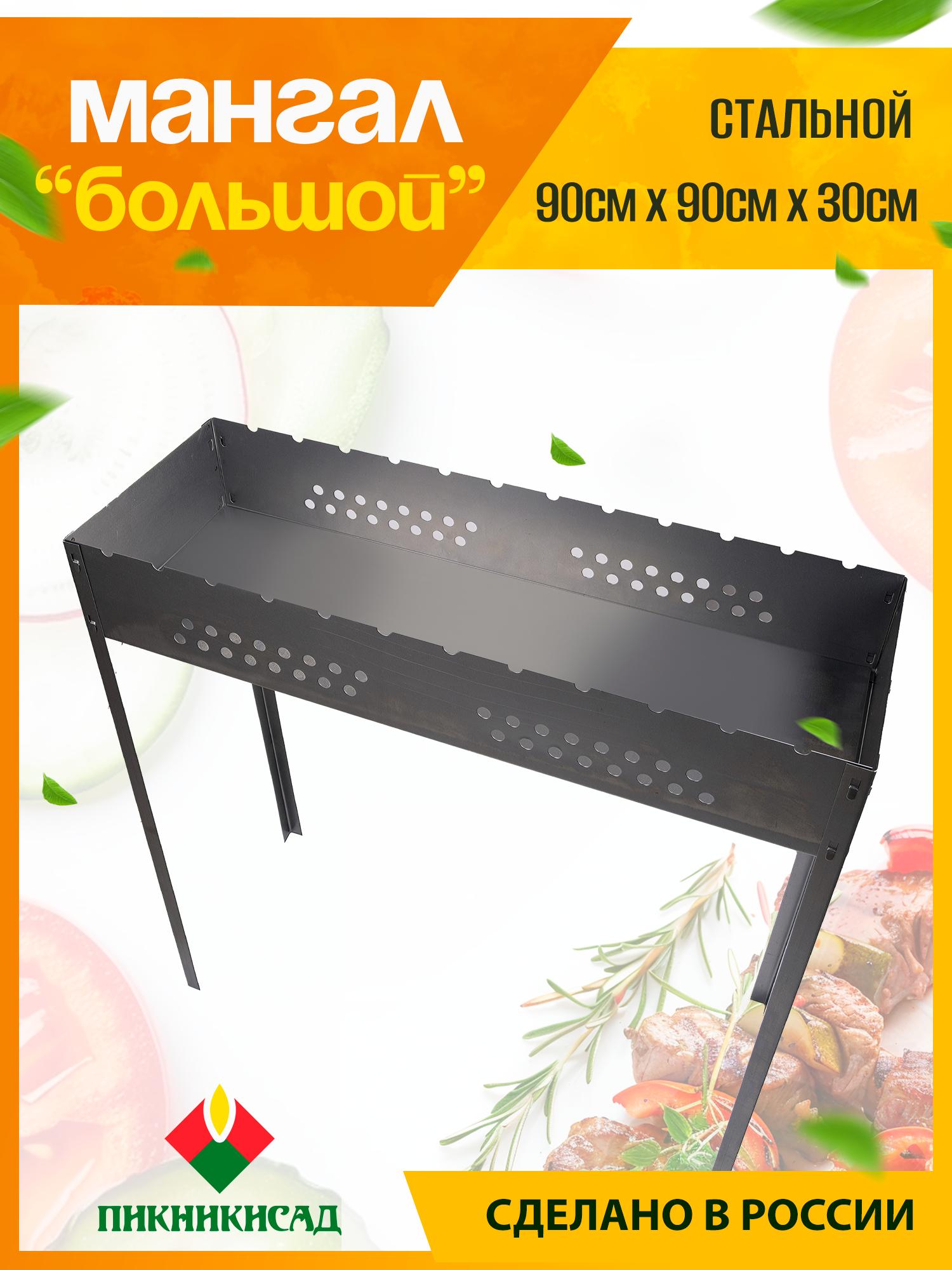 Мангал разборный складной для шашлыка и барбекю 90х90х30 см информация: