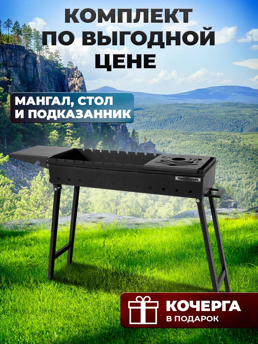 10 цен на Мангал складной для дачи 3 мм СамЖарыч 14 с Подказанником и столом