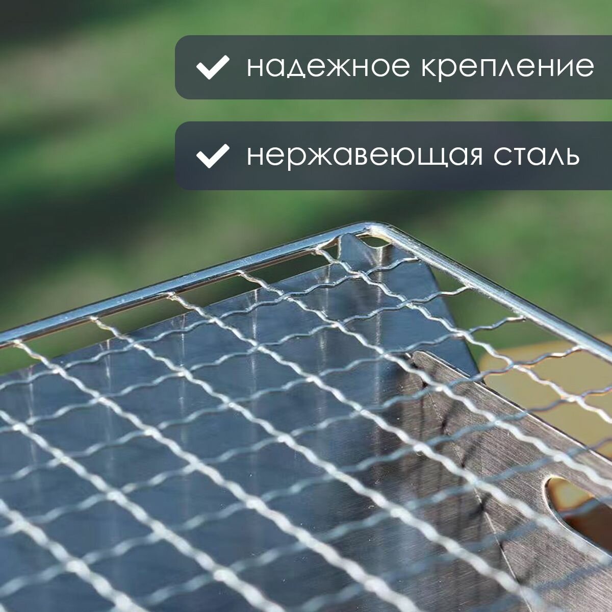 Мангал "Рыбалка", складной, в сумке, с решеткой-гриль из нержавеющей стали и разделочной доской-опахалом. В сумке. 36х26х42см.