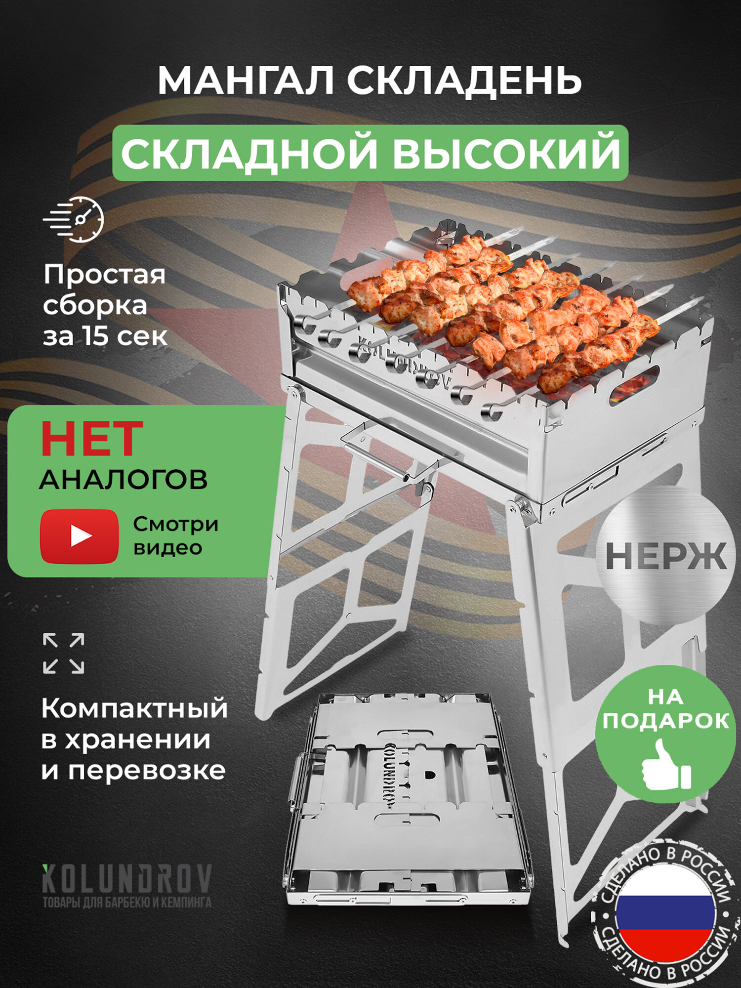 Отзывы на Мангал из нержавеющей стали складной KOLUNDROV Складень, с чехлом и кочергой, высокий, сборный мобильный для дачи и шашлыка