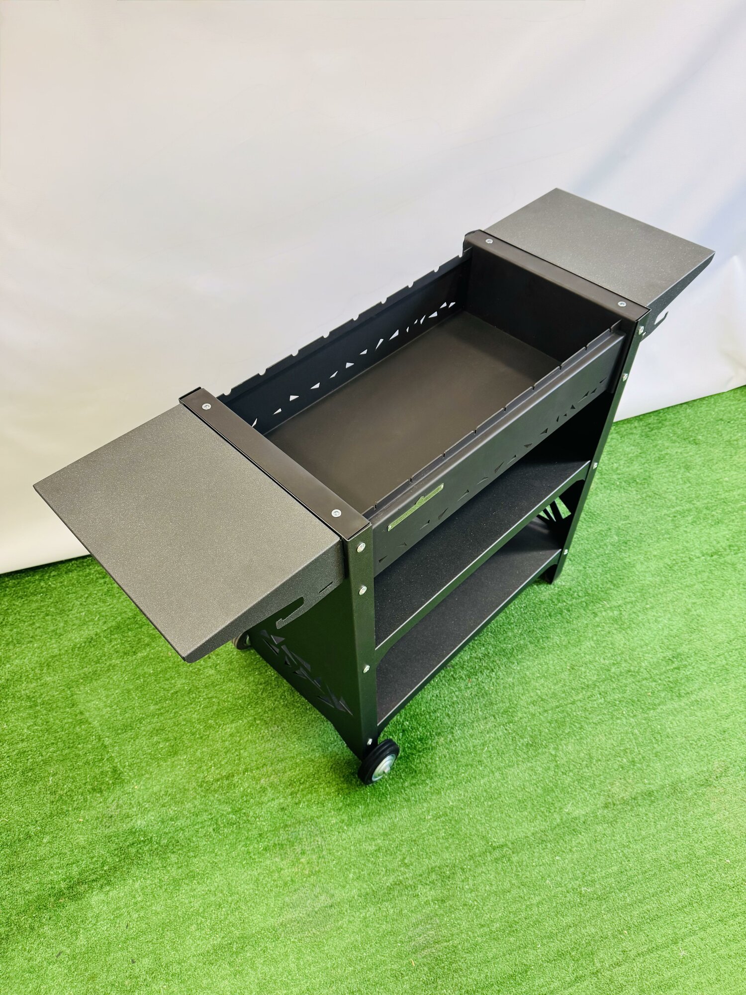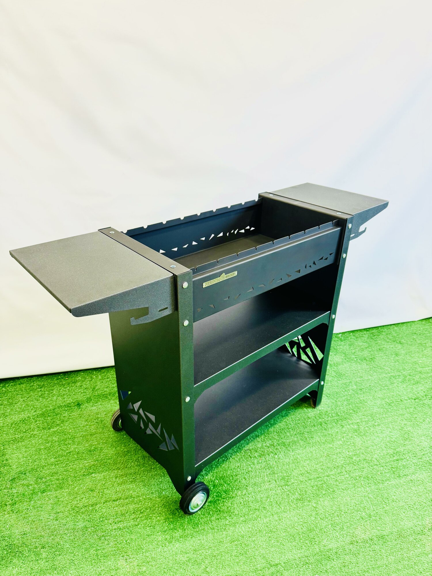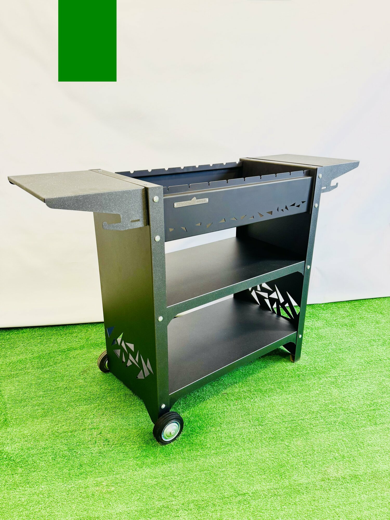 Мангал 800 мм. с полкой-решёткой и полкой под казан, сталь рифленая-усиленная 3 мм. разборный, с полкой под дрова