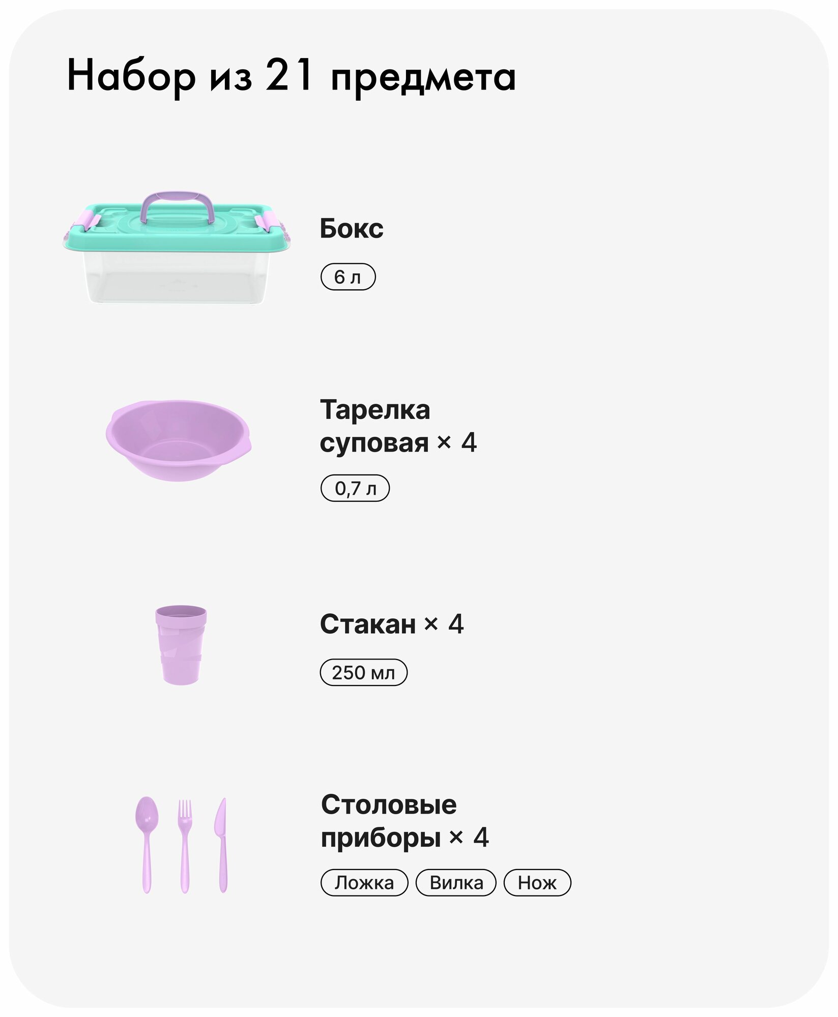 Набор посуды для пикника №2, Альт-Пласт, 21 предмет на 4 персоны, пластик информация: