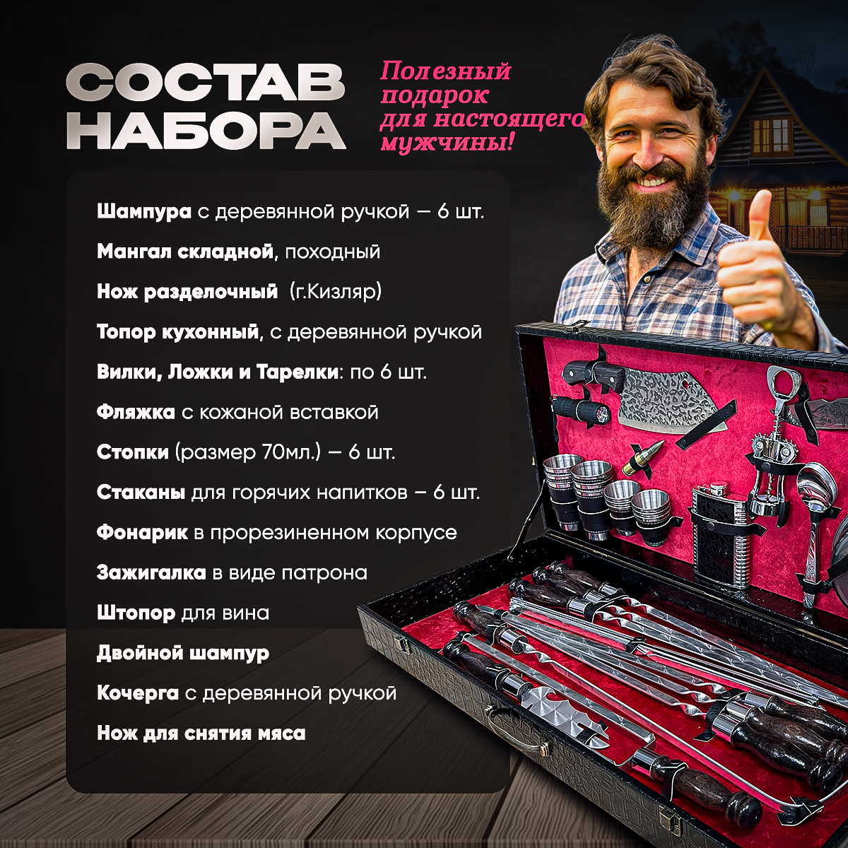 10 цен на Большой шашлычный набор в подарочном кейсе На 6 персон №16