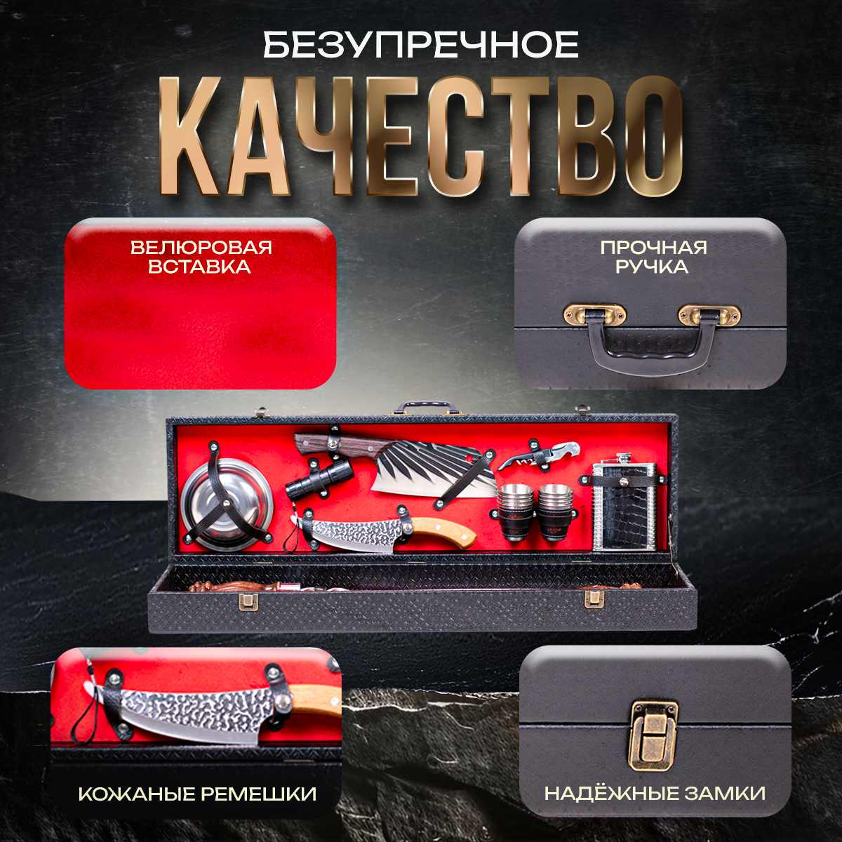 Отзывы на Набор для шашлыка подарочный в кейсе № 22 от GRILLS FACTORY. На 8 персон, с красным велюром внутри