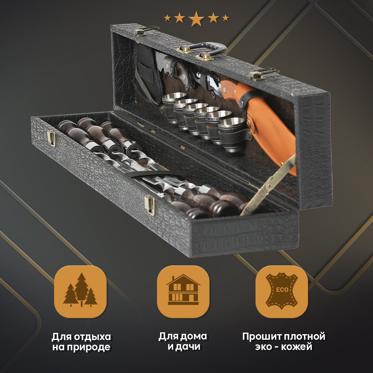10 цен на Шашлычный набор подарочный в кейсе № 29 от GRILLS FACTORY. На 6 персон, с коричневым велюром внутри