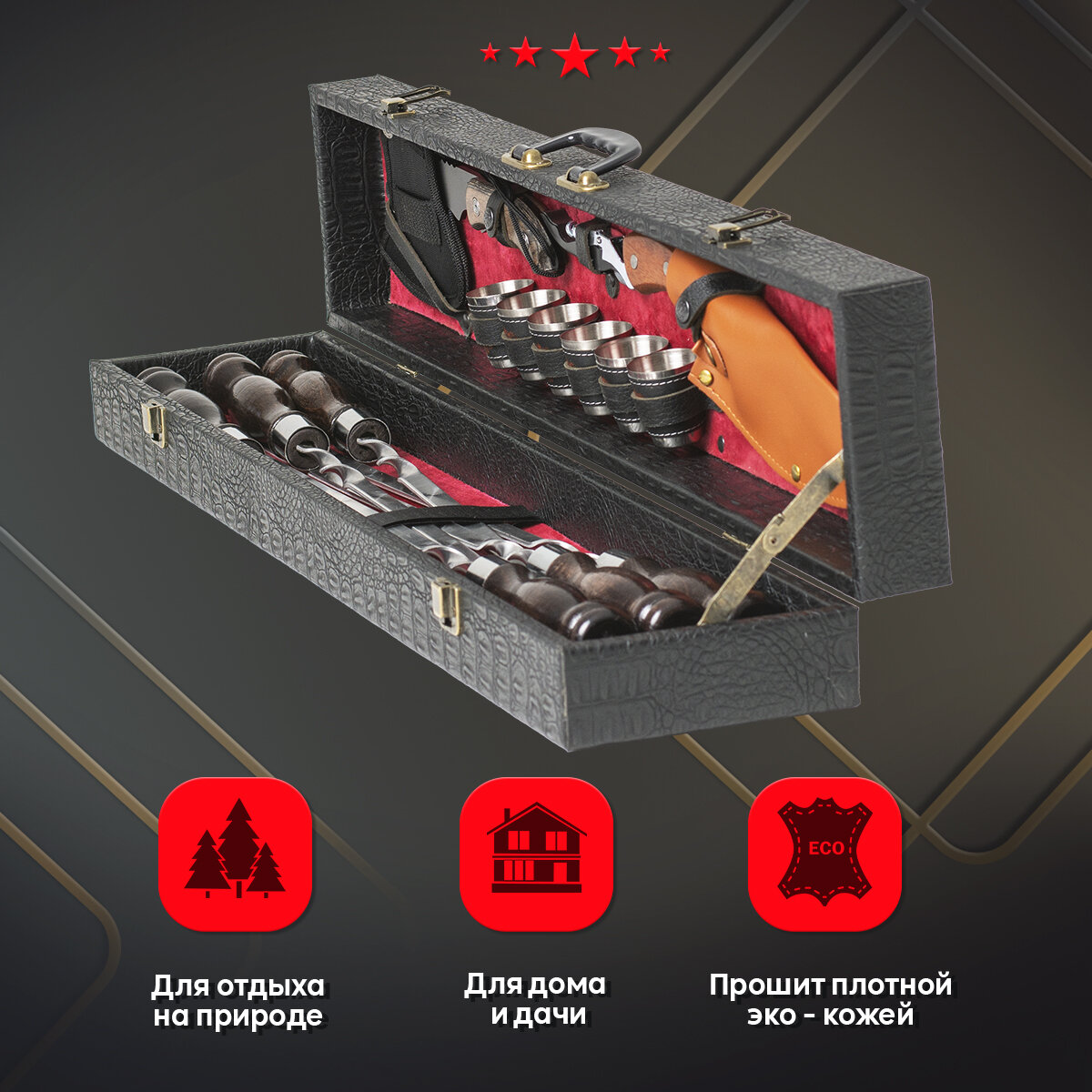10 цен на Набор для пикника подарочный в кейсе № 29 от GRILLS FACTORY. На 6 персон, с красным велюром внутри