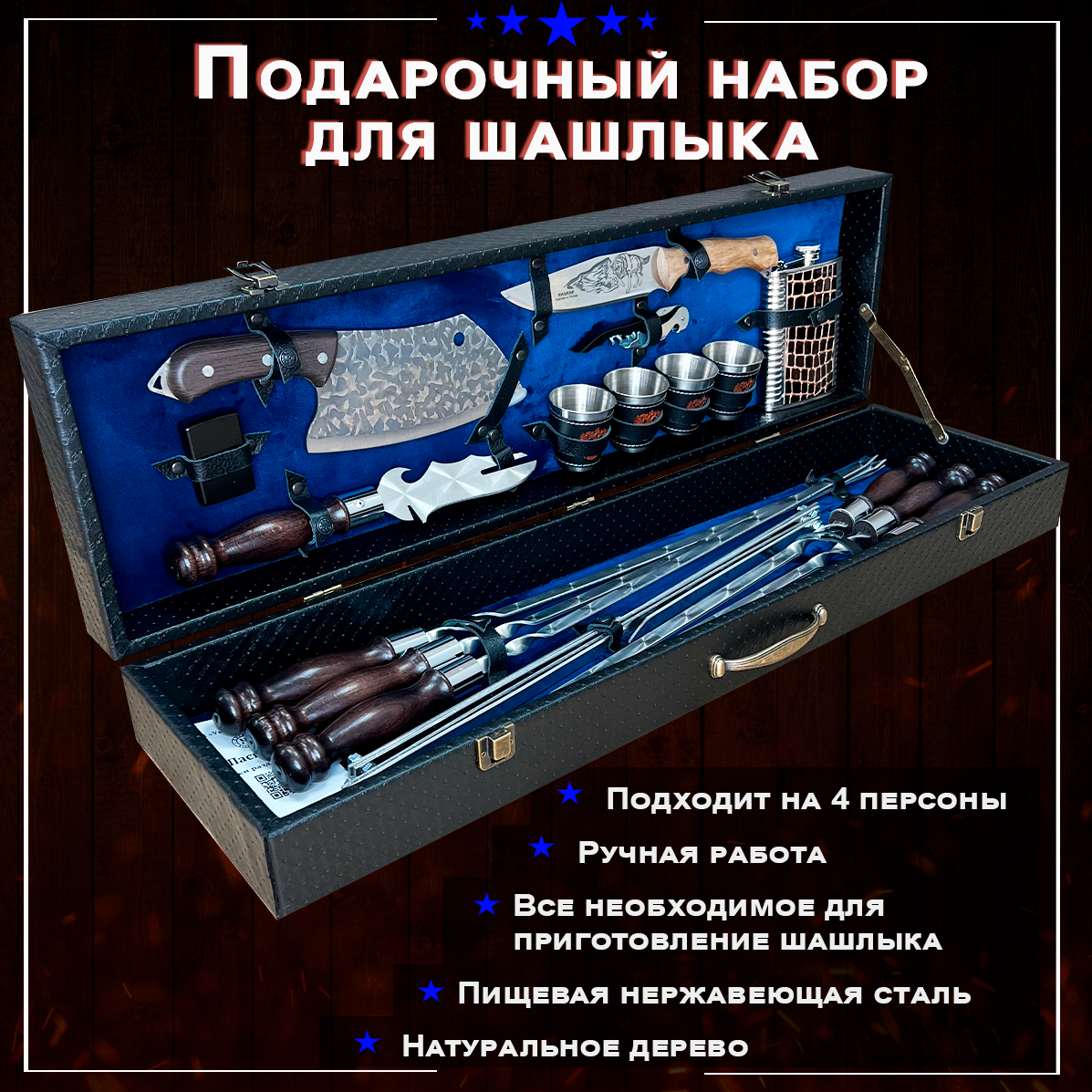10 цен на Шашлычный набор подарочный в кейсе № 8 от GRILLS FACTORY. На 4 персоны, с синим велюром внутри