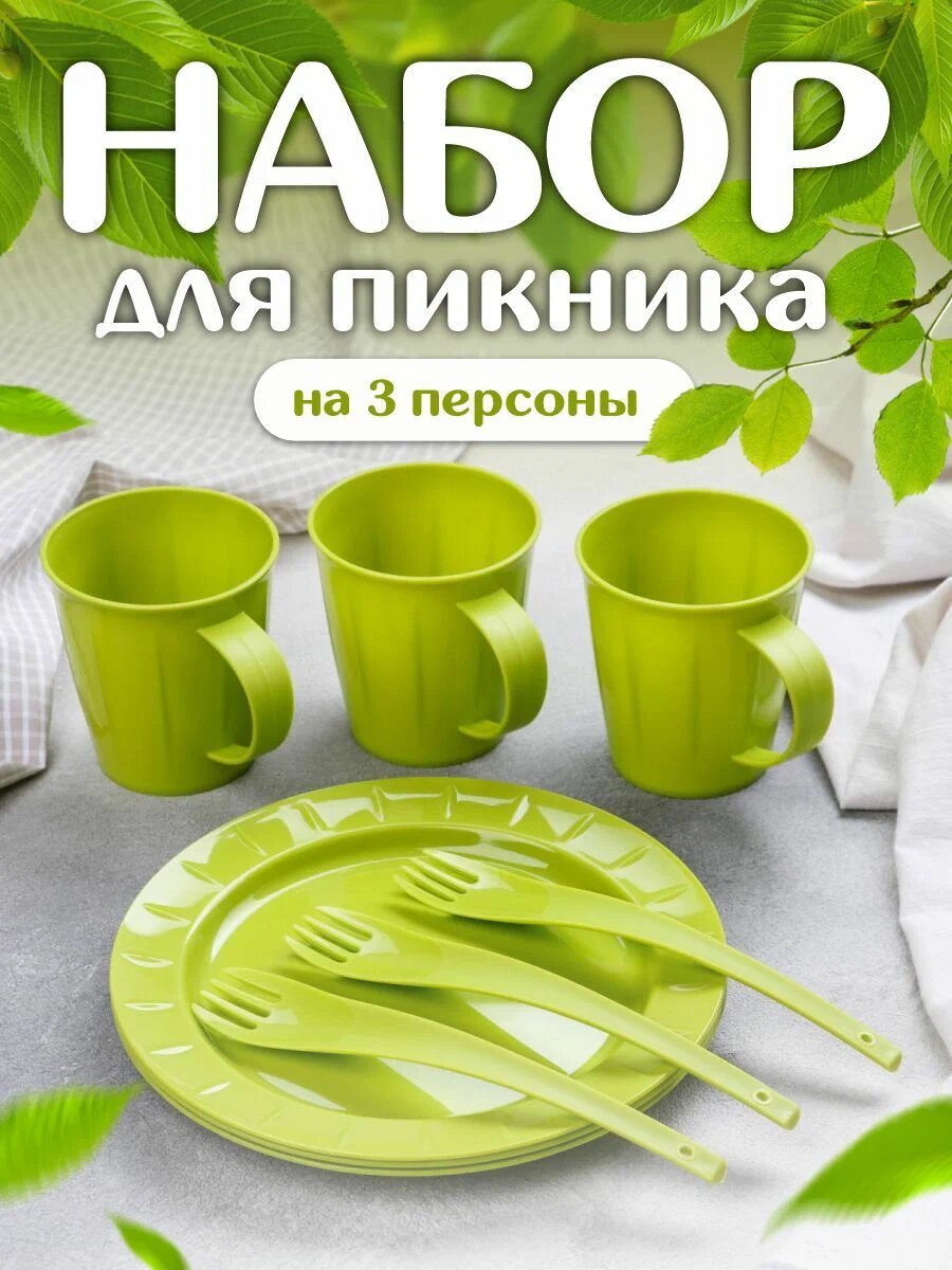 Набор пластиковой посуды для пикника на 3 персоны, 9 предметов, фисташка 1811 информация: