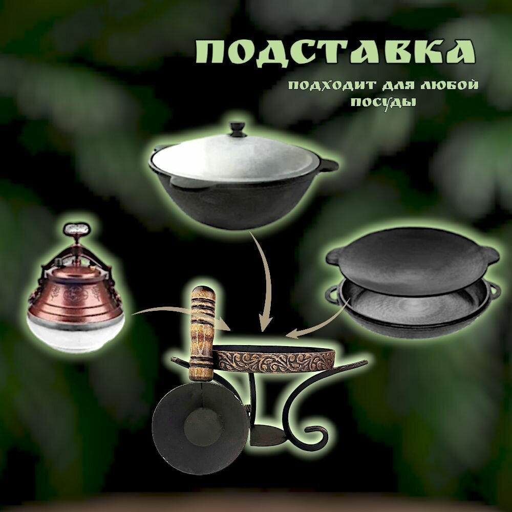 Комплект посуды для пикника и отдыха/садж 50см воронёный+подставка с черпаком/Казаны РФ 10 201 ₽