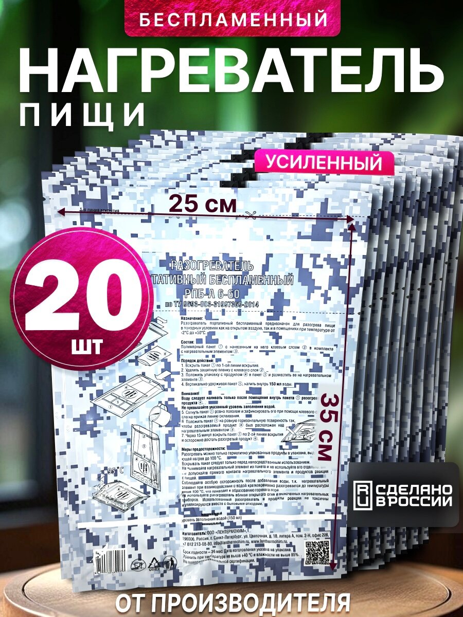 20 шт - БНП большой усиленный - Беспламенный нагреватель пищи (Разогреватель) информация: