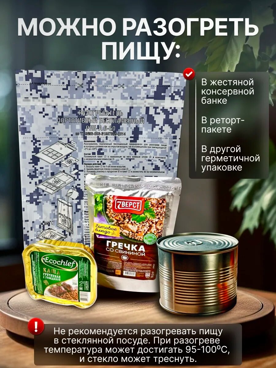 50 шт - БНП большой усиленный - Беспламенный нагреватель пищи (Разогреватель) информация: