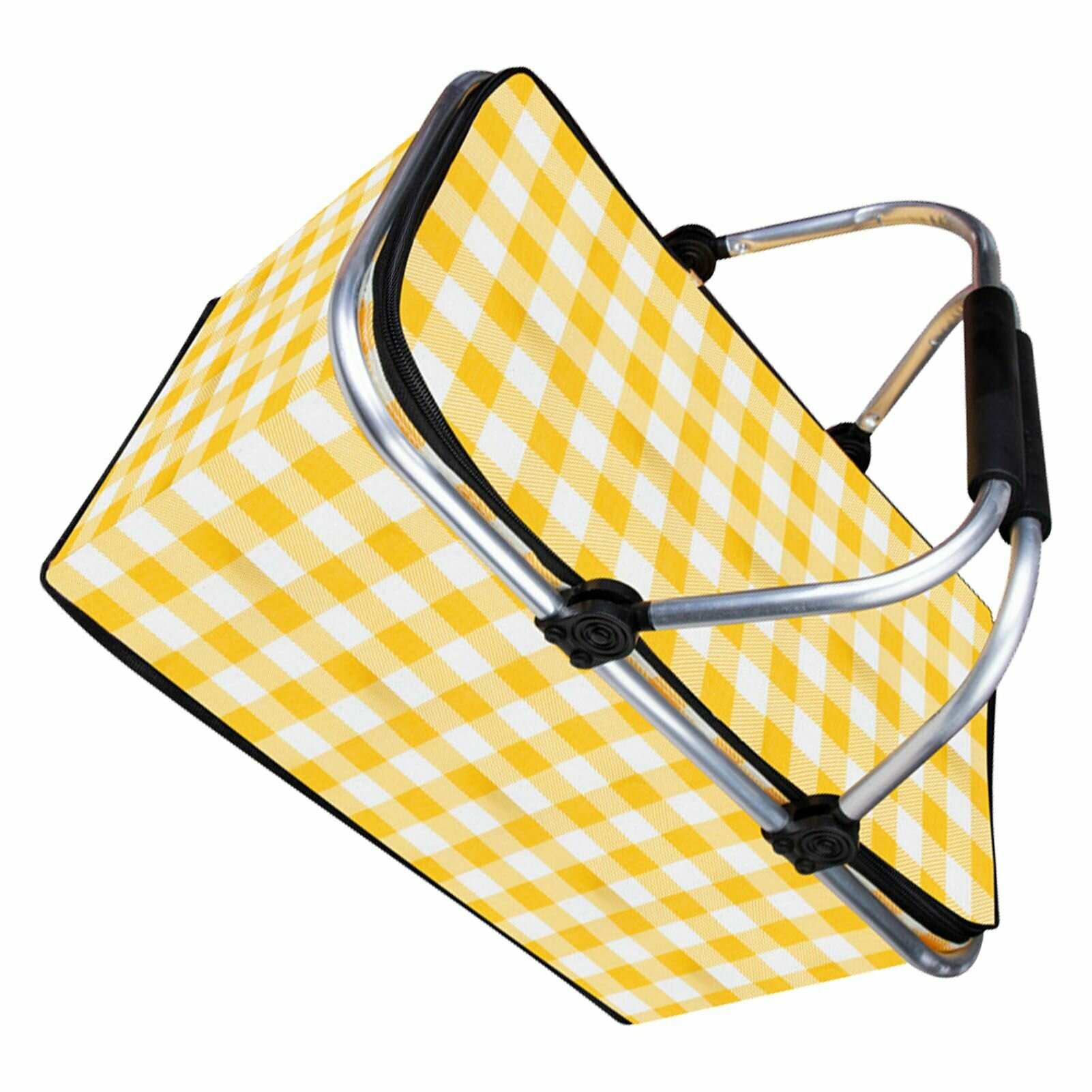 Корзина для пикника Складная изолированная корзина для хранения из ткани Оксфорд с клетчатым узором для пикника Кемпинг Желтая обычная информация: