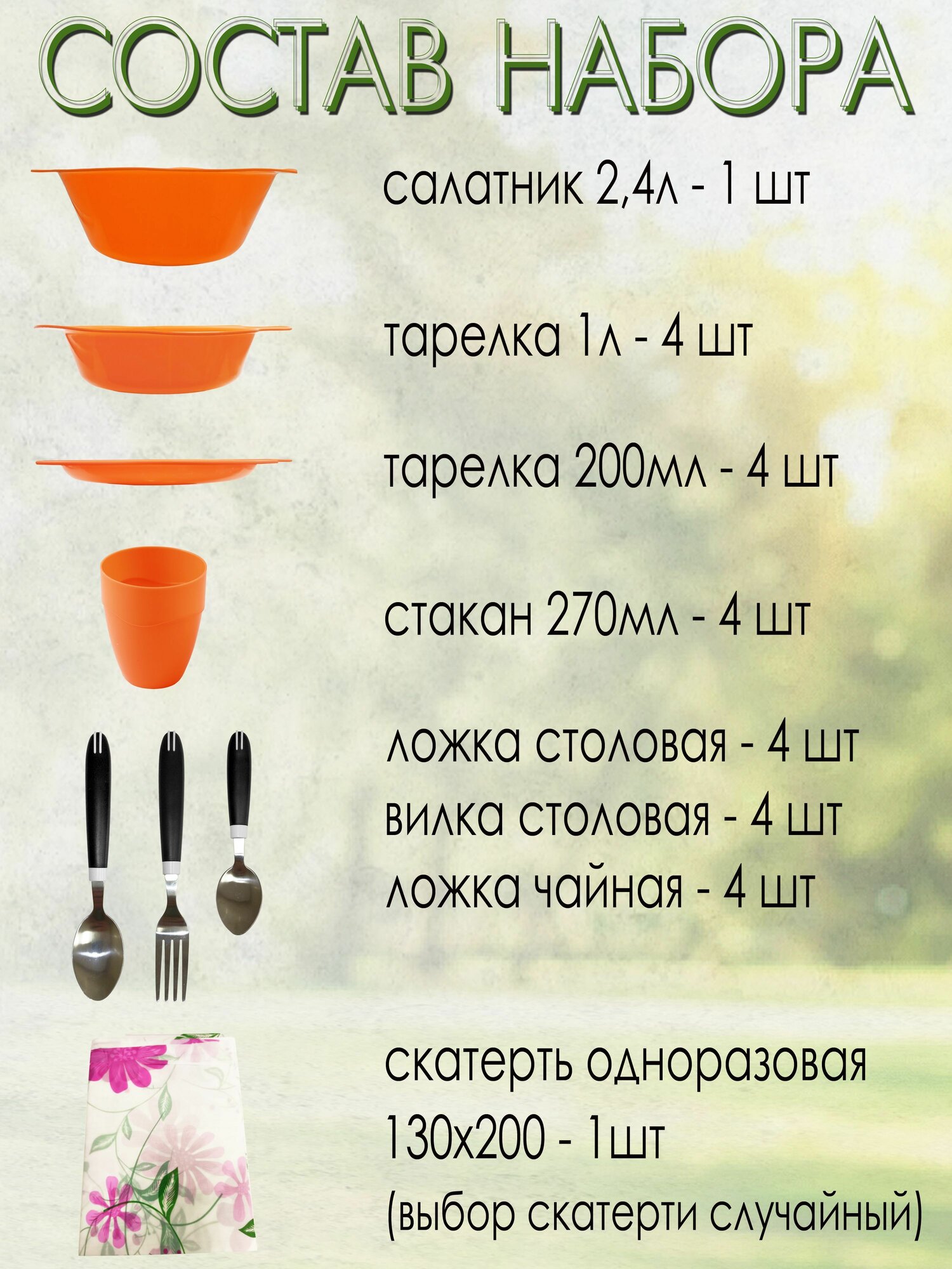 Набор для пикника, 4 персоны, 26 предметов (оранжевый) НПОЧ4В информация: