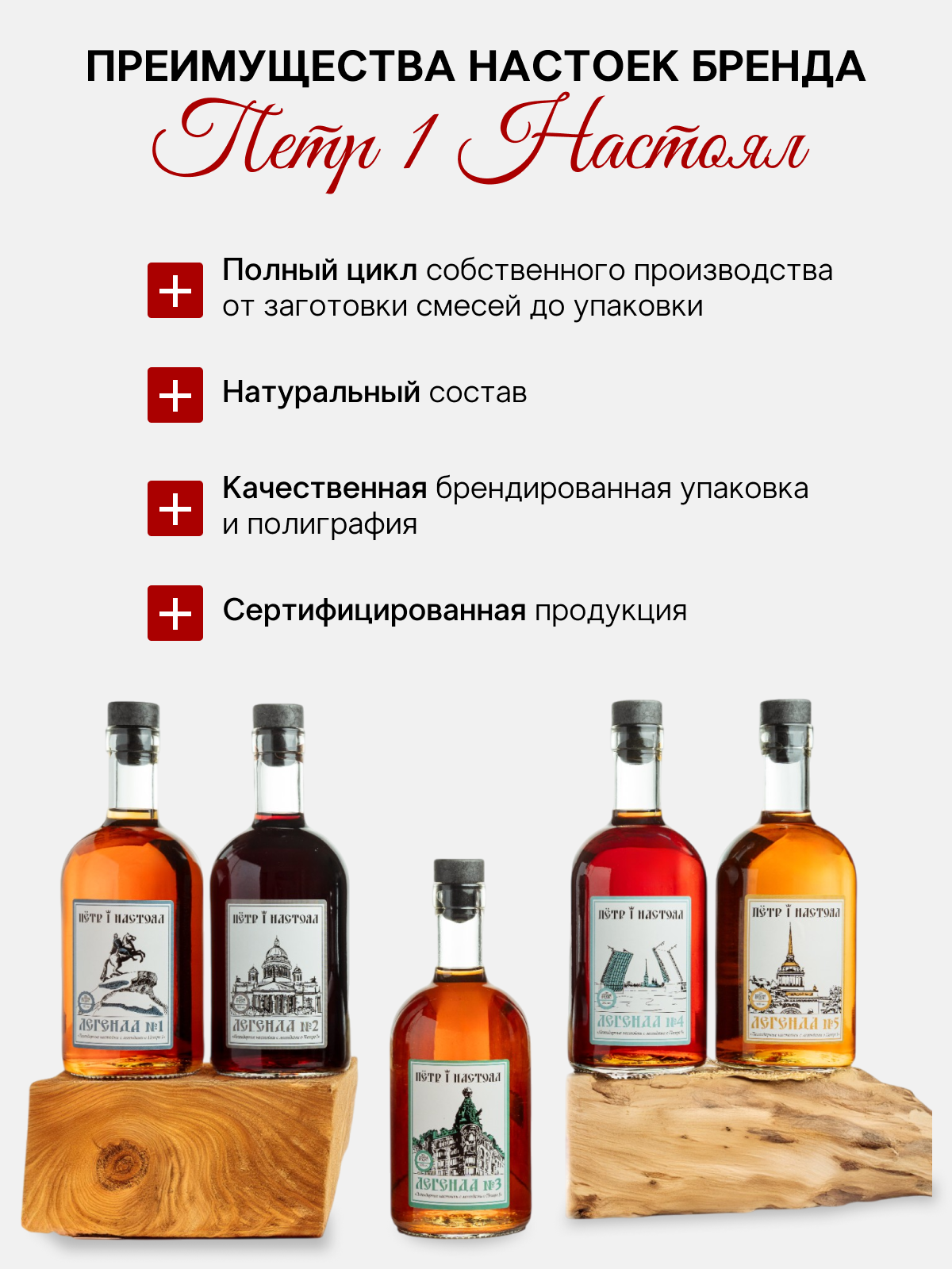 Набор для приготовления настоек "Пётр I Настоял", подарочный, в картонной упаковке, 5 бутылок информация: