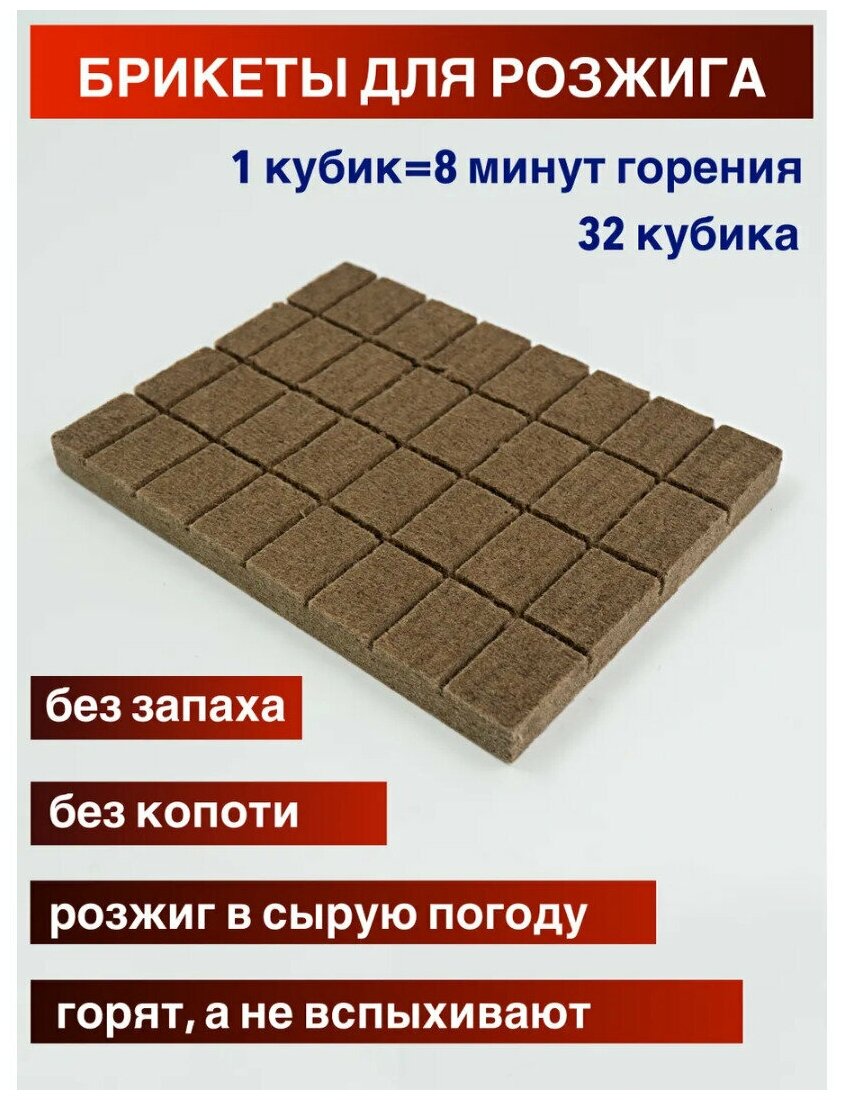Кубики для розжига, 64 шт (2 упаковки по 32 кубика), для камина костра печи мангала и барбекю информация: