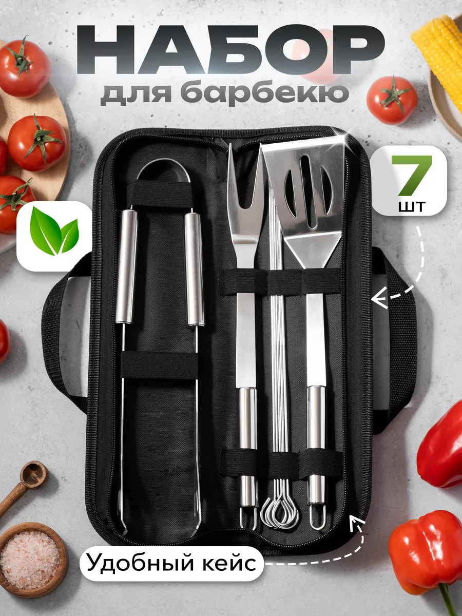 Отзывы на Набор для барбекю гриля шашлыка в кейсе подарочный нержавеющая сталь, 7 предметов
