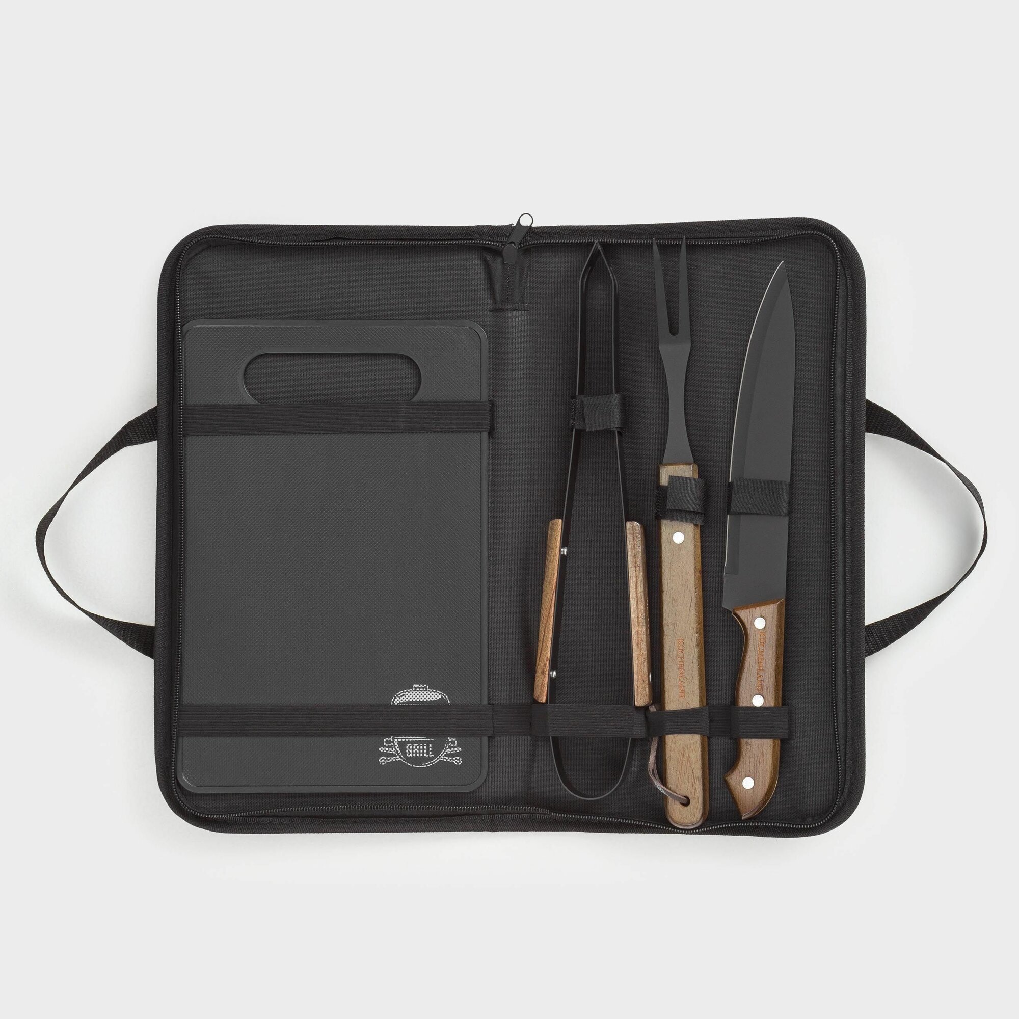 10 цен на Набор для барбекю, 4 пр, в кожаном кейсе, сталь/дерево/экокожа, BBQ