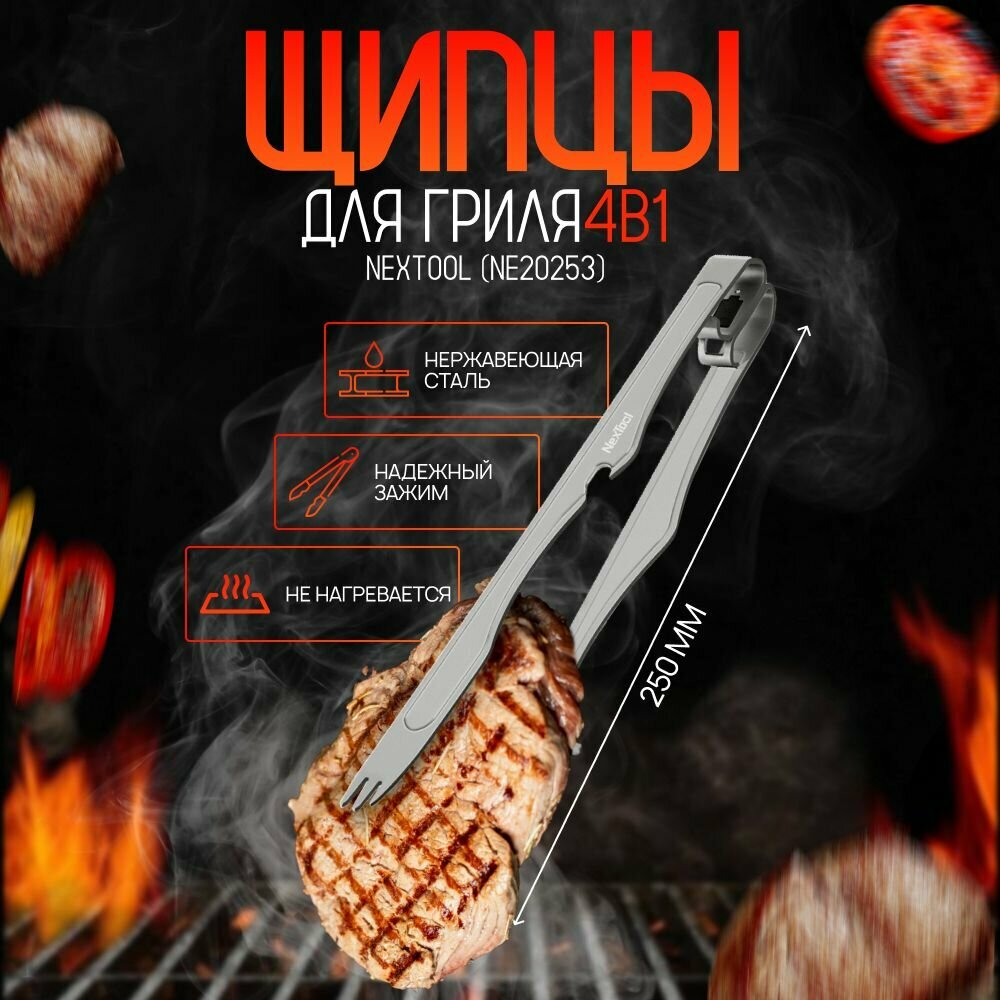 10 цен на Щипцы для гриля 4в1 NexTool Multifunctional Titanium Tongs (NE20253) (шипцы, вилка, открывалка, нож)