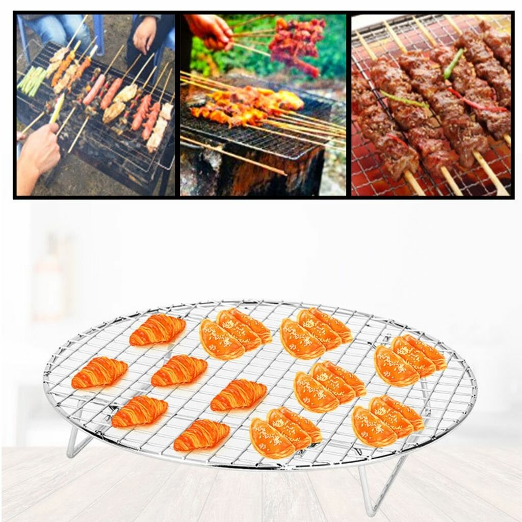 Отзывы на Складная круглая решетка для гриля, универсальная сетка барбекю, прочные аксессуары охлаждения хлеба, кухонные