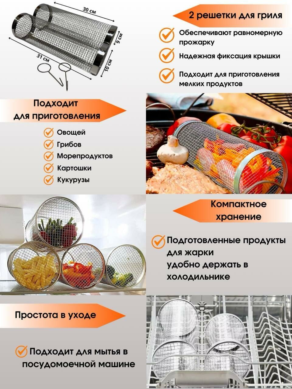 10 цен на Решетки для гриля, мангала, барбекю круглые: набор