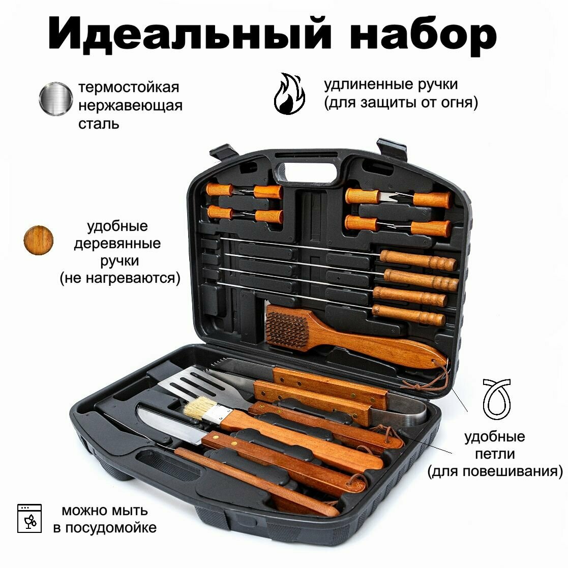 Отзывы на Гриль с деревянной ручкой из нержавеющей стали, набор из 19 предметов, многофункциональный гриль, 19 предм. на 1 перс.