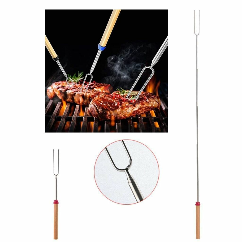 Отзывы на 4 шт, палочка для запекания с деревянной ручкой, выдвижные вилки из нержавеющей стали, вилка для барбекю для костров, гриля и колбас
