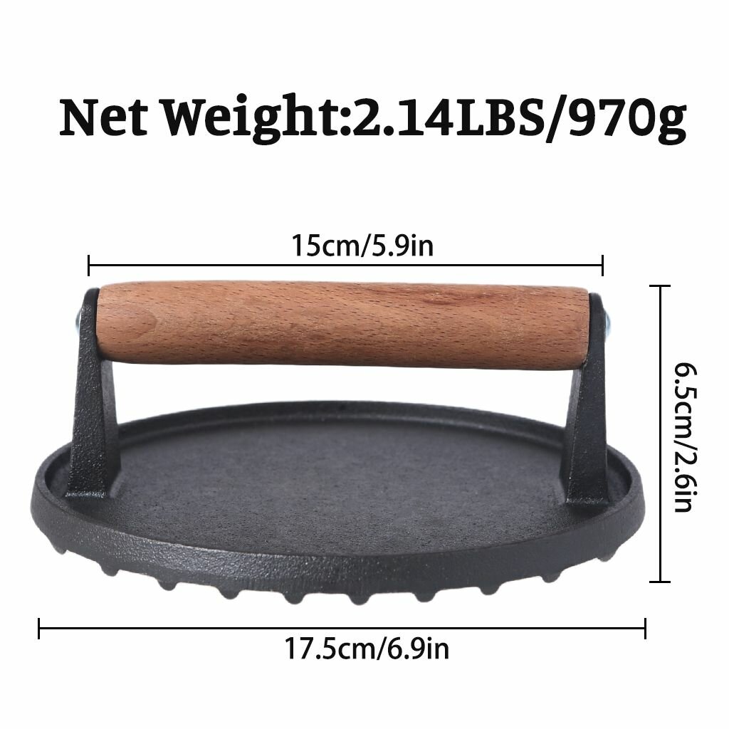 (1) Чугунный пресс для мяса BBQ Steak Press Round информация: