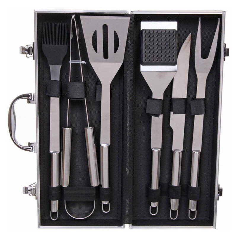 10 цен на Набор для барбекю в кейсе/ Набор для барбекю 6 в 1: нож, щипцы, лопатка, вилка, кисть, щетка