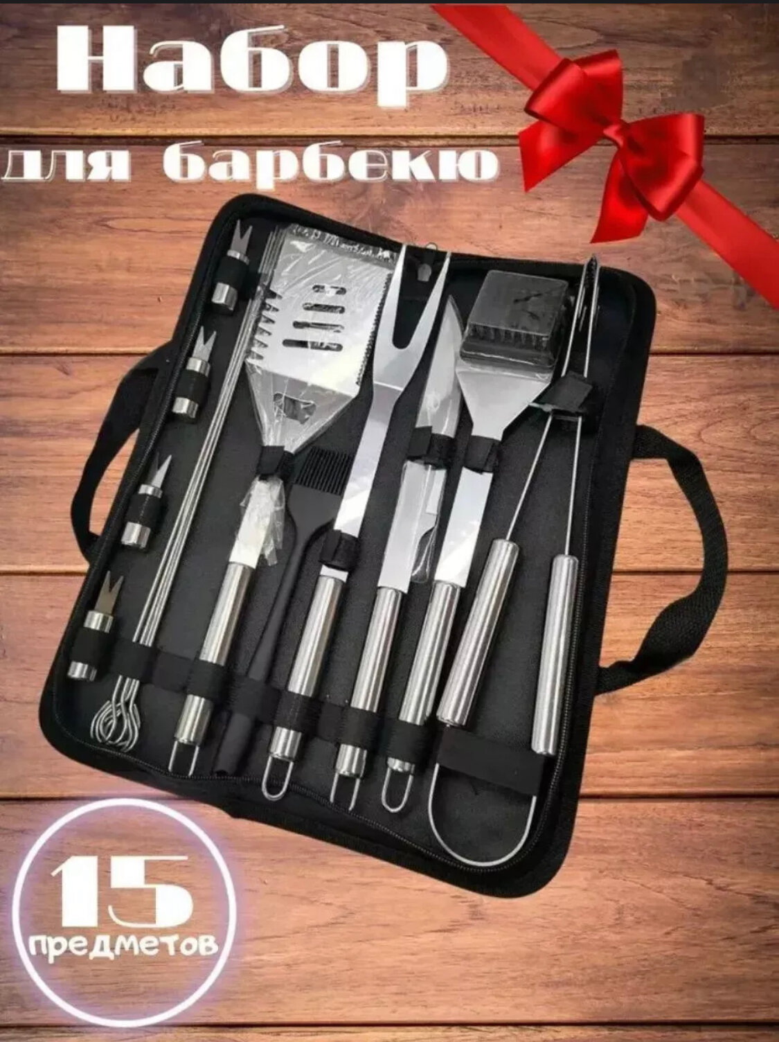 10 цен на Набор для барбекю "Дачный", нержавеющая сталь, 15 предметов, в чехле