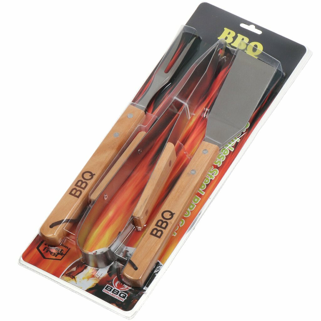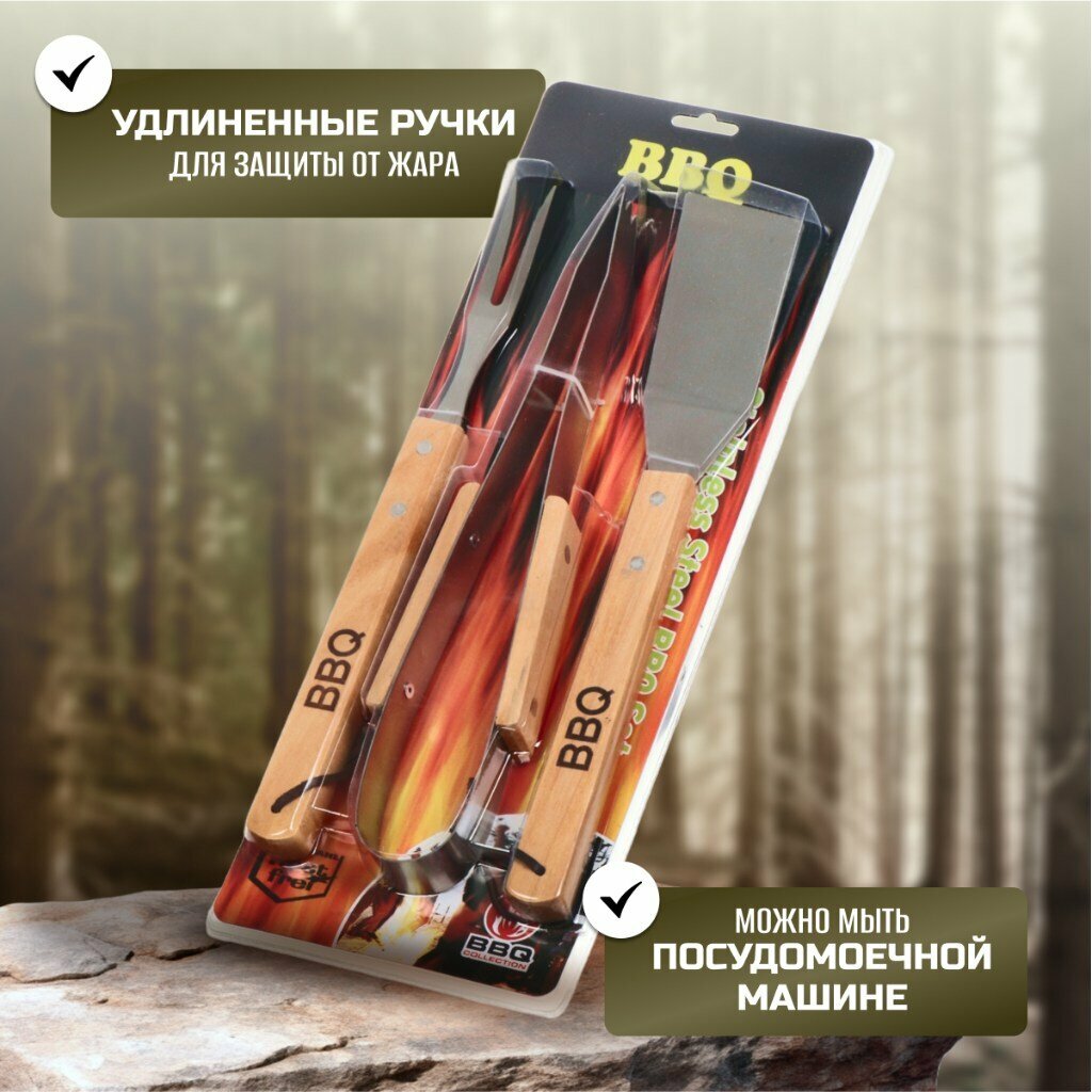 Отзывы на Набор для барбекю костровой, дерево, сталь, 3 предмета, вилка, щипцы, лопатка, Y9-295