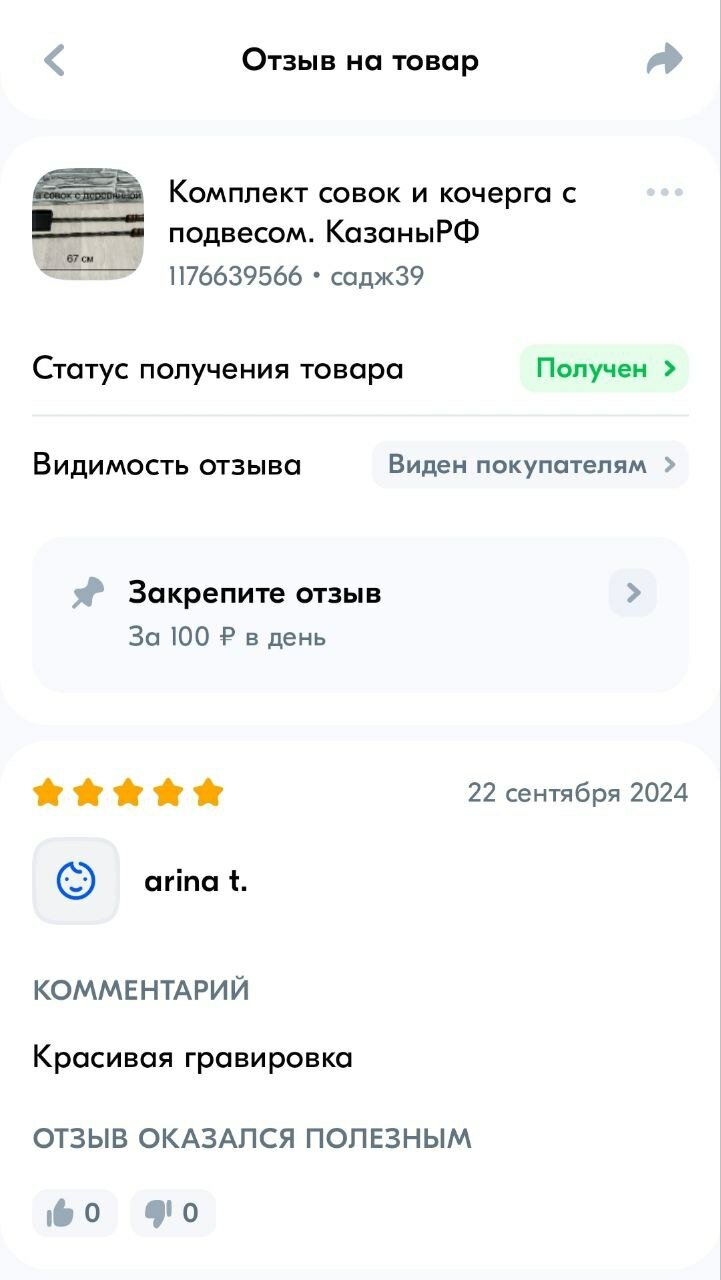 Отзывы на Комплект кочерга совок с подвесом, для мангала и печи, Казаны РФ