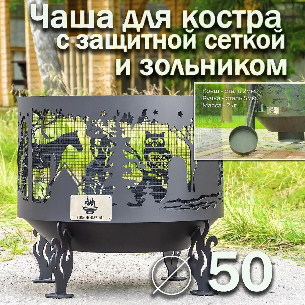 Костровая чаша "Ежик в тумане" 50 см с зольником и защитной сварной сеткой / FIRE-HOUSE информация: