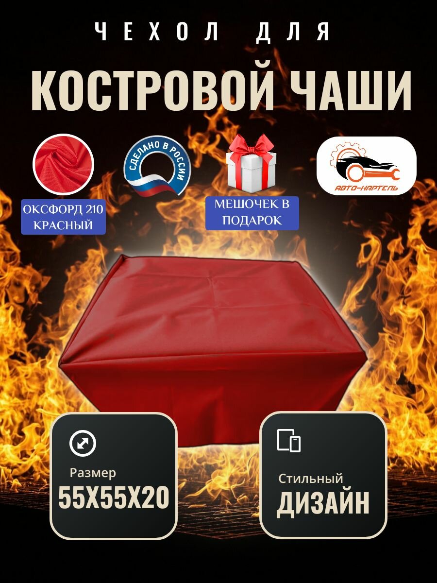 Чехол квадратный для костровой чаши с затяжками, 55х55х20 см, Оксфорд 210, красный информация: