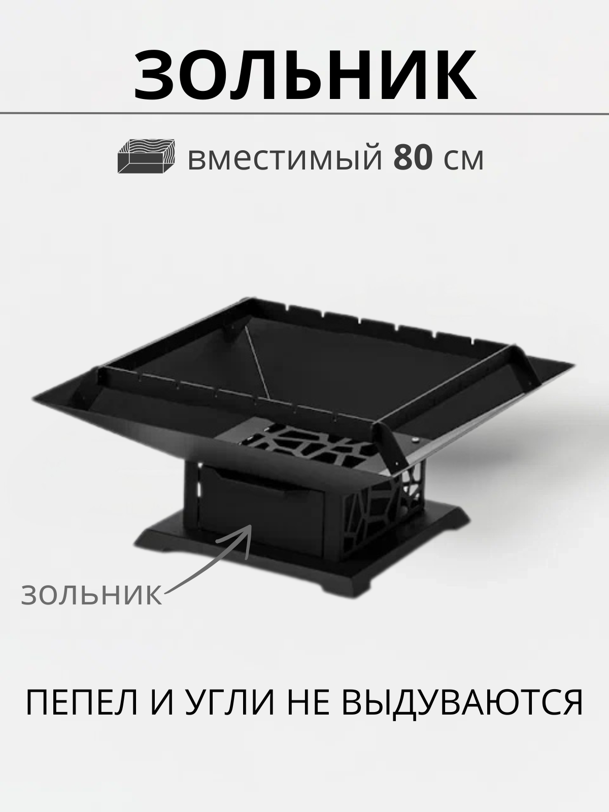 Костровая чаша 56 см, очаг с зольником, металл 3 мм, квадратная "Спарта" информация: