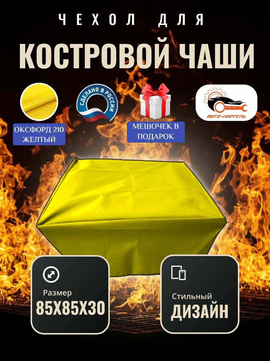 Чехол квадратный для костровой чаши с затяжками, 85х85х20 см, Оксфорд 210, желтый информация: