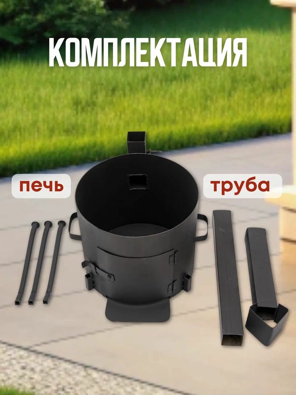 Печь с трубой разборный 8 л толщина 3мм информация: