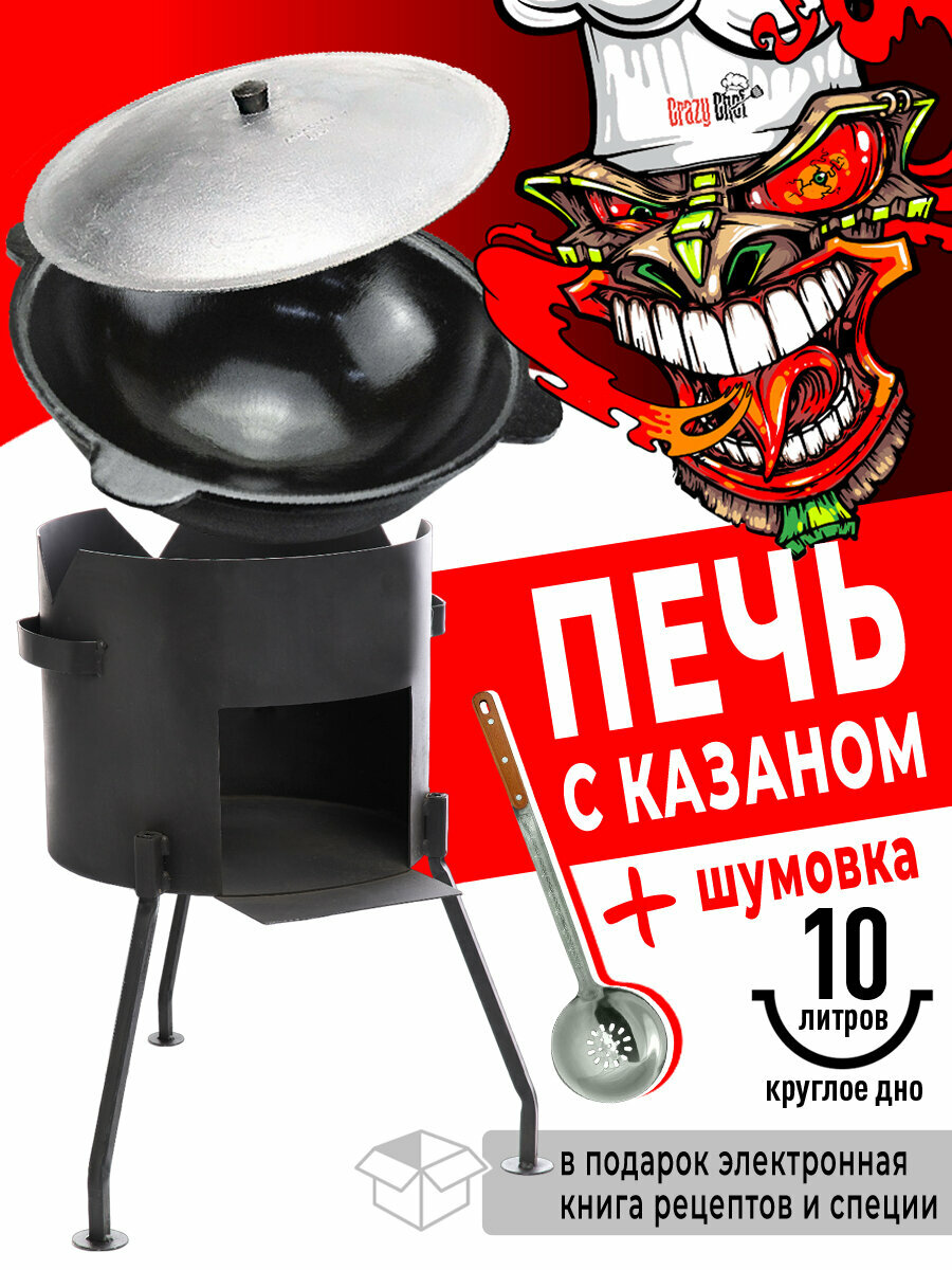 10 цен на Казан чугунный с круглым дном, 10 л, с крышкой + печь со съемными ножками