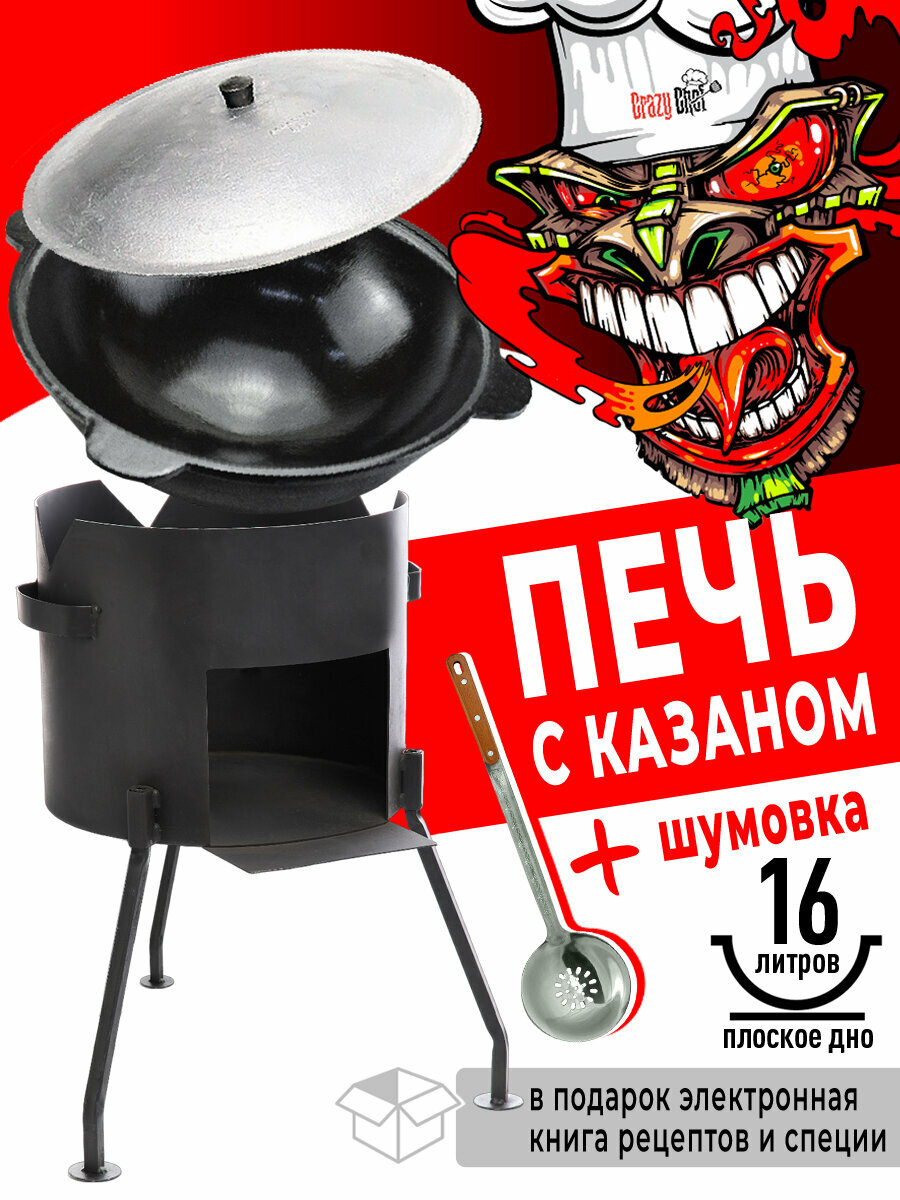 Казан чугунный с плоским дном, 16 л, с крышкой + печь со съемными ножками информация: