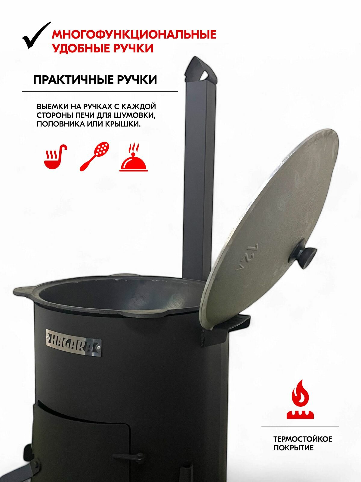 Печь для казана объемом 10 литров с ручками, съемные ножки, зольник