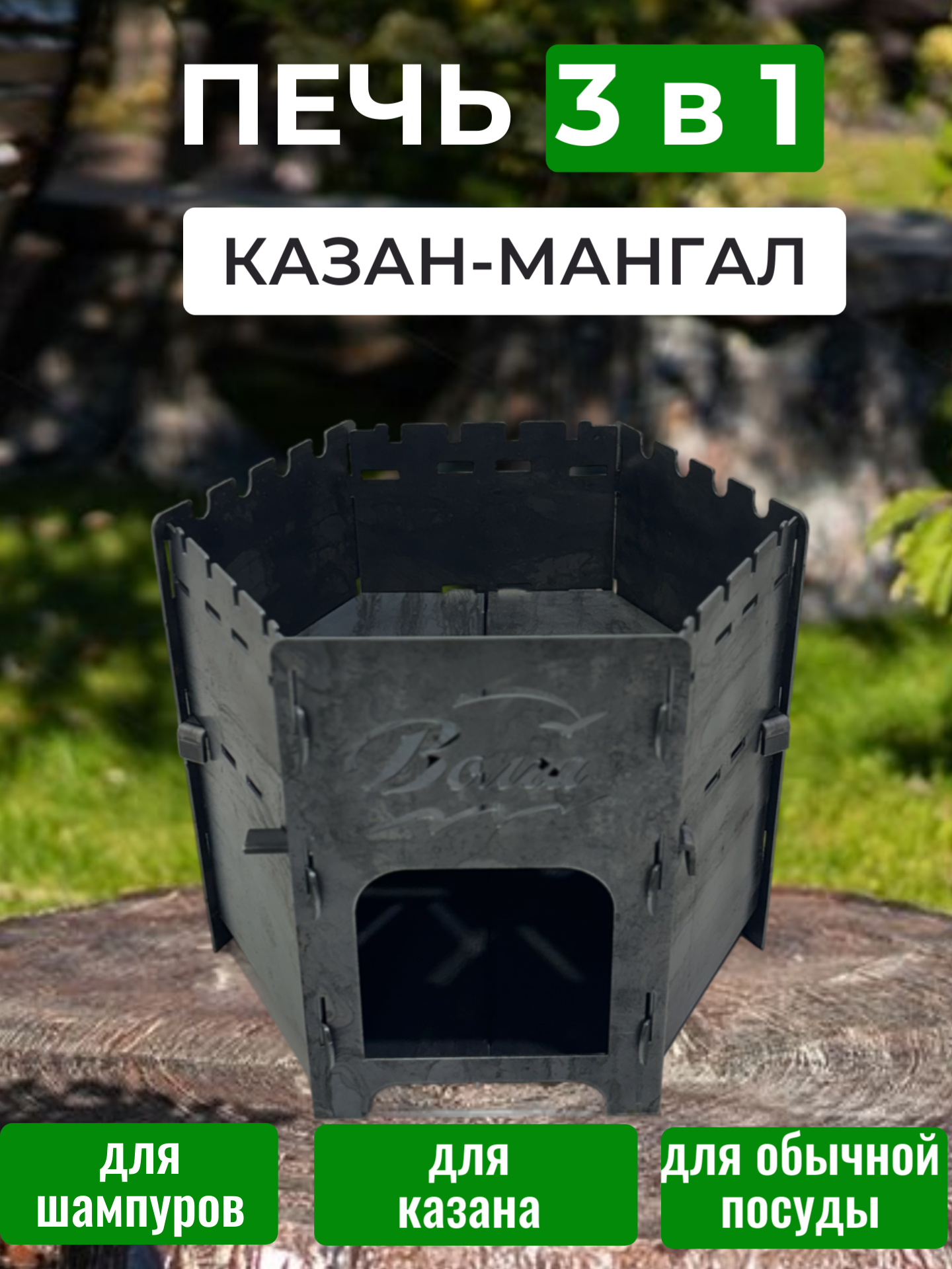 Печь для казана объемом 10 литров с ручками, съемные ножки, зольник