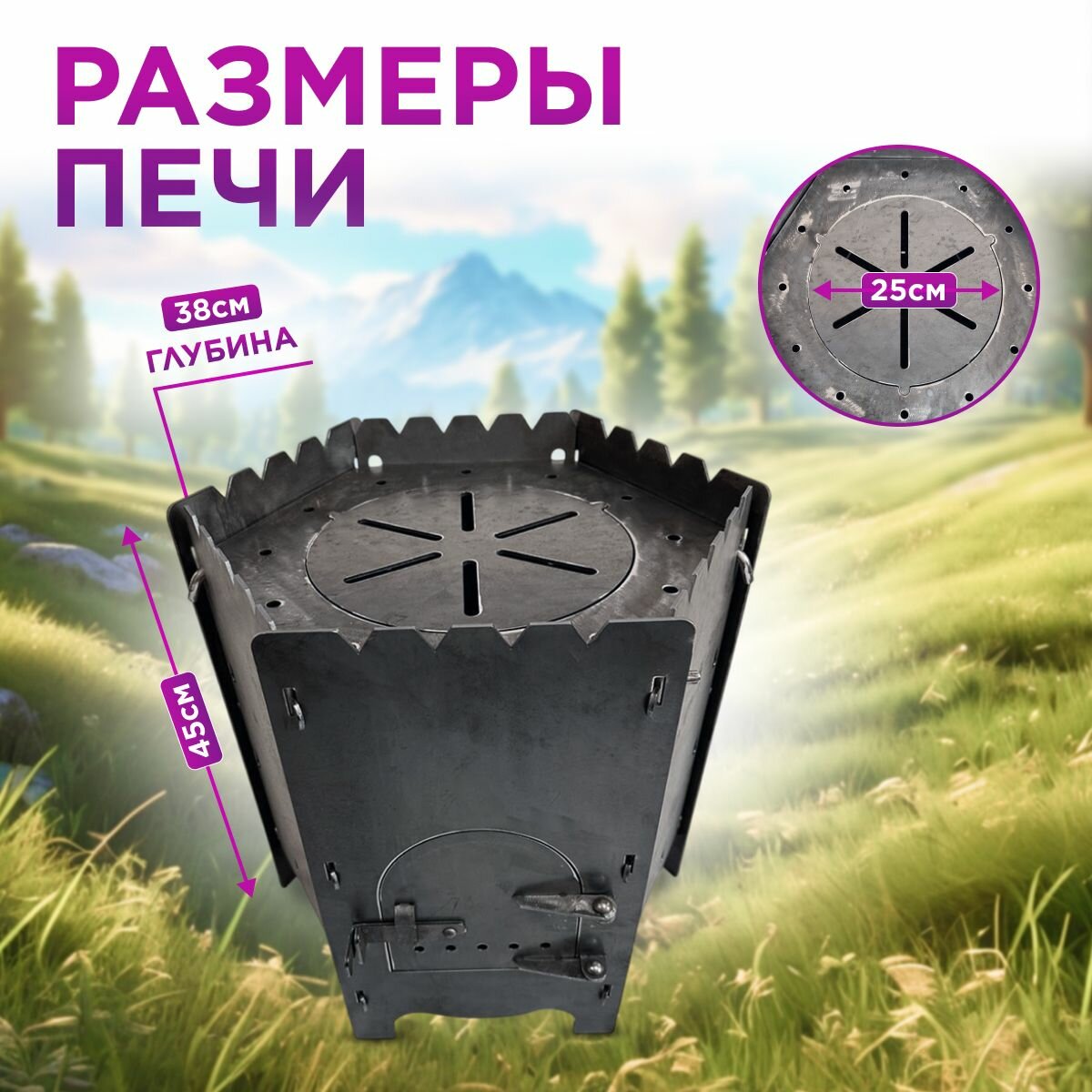 Печь для казана объемом 10 литров с ручками, съемные ножки, зольник