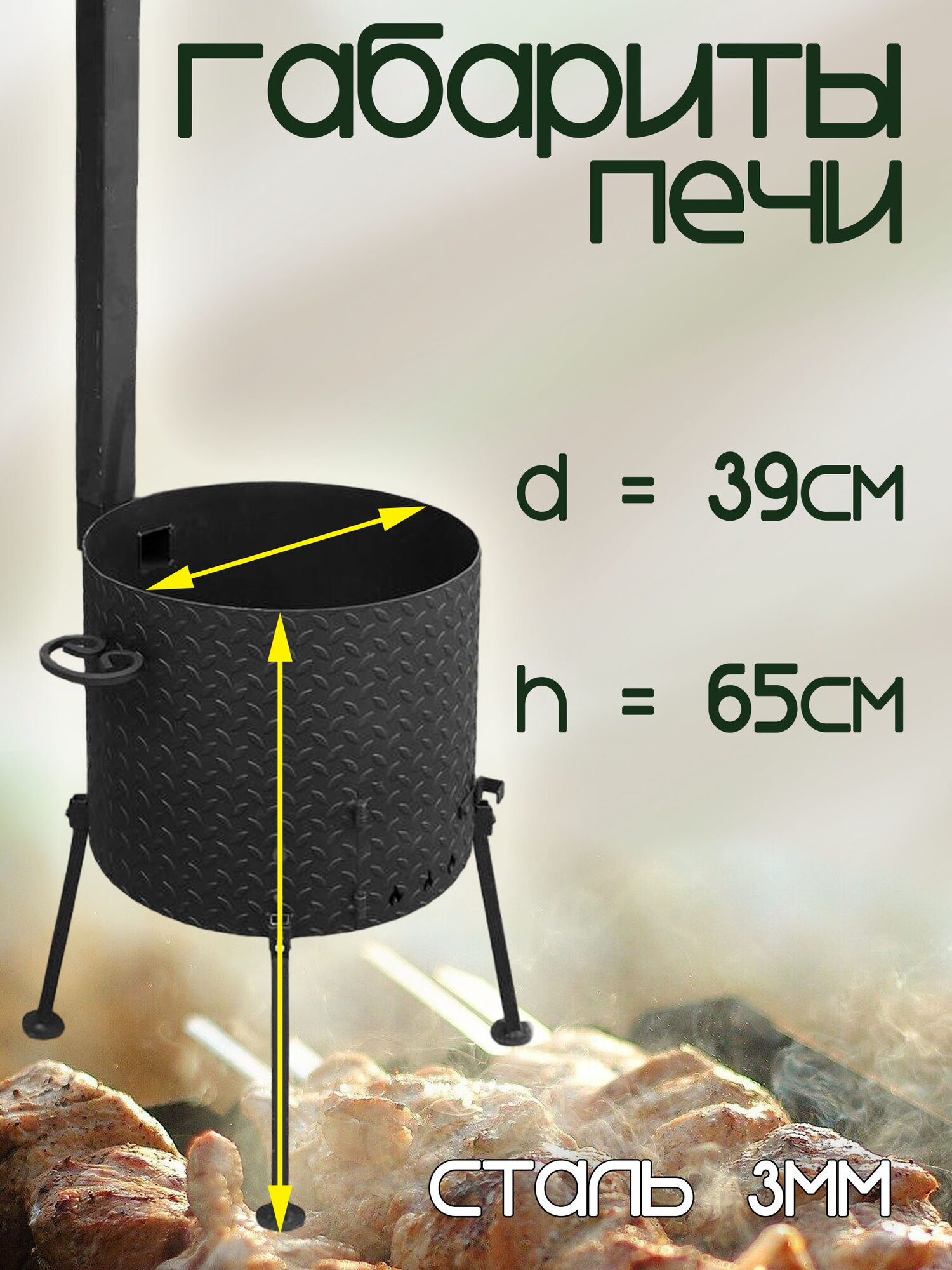 Печь для казана 390мм с колосником и дымоходом, толщина стали 3мм информация: