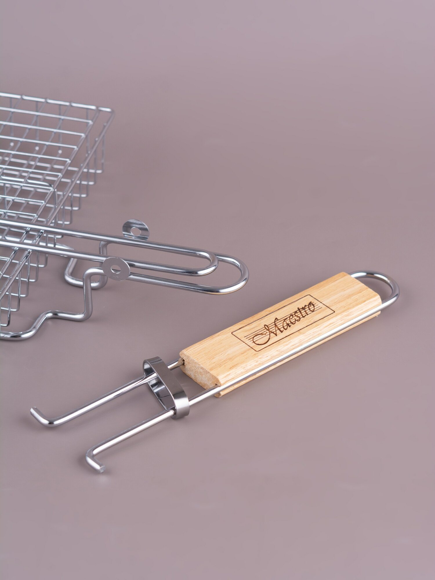 Решетка гриль LESNIKOVA, для птицы, металл, деревянная рукоять, 35x26 см