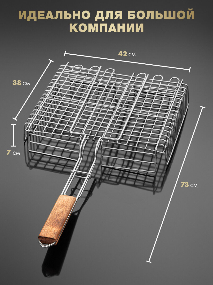 Решетка гриль LESNIKOVA, для птицы, металл, деревянная рукоять, 35x26 см