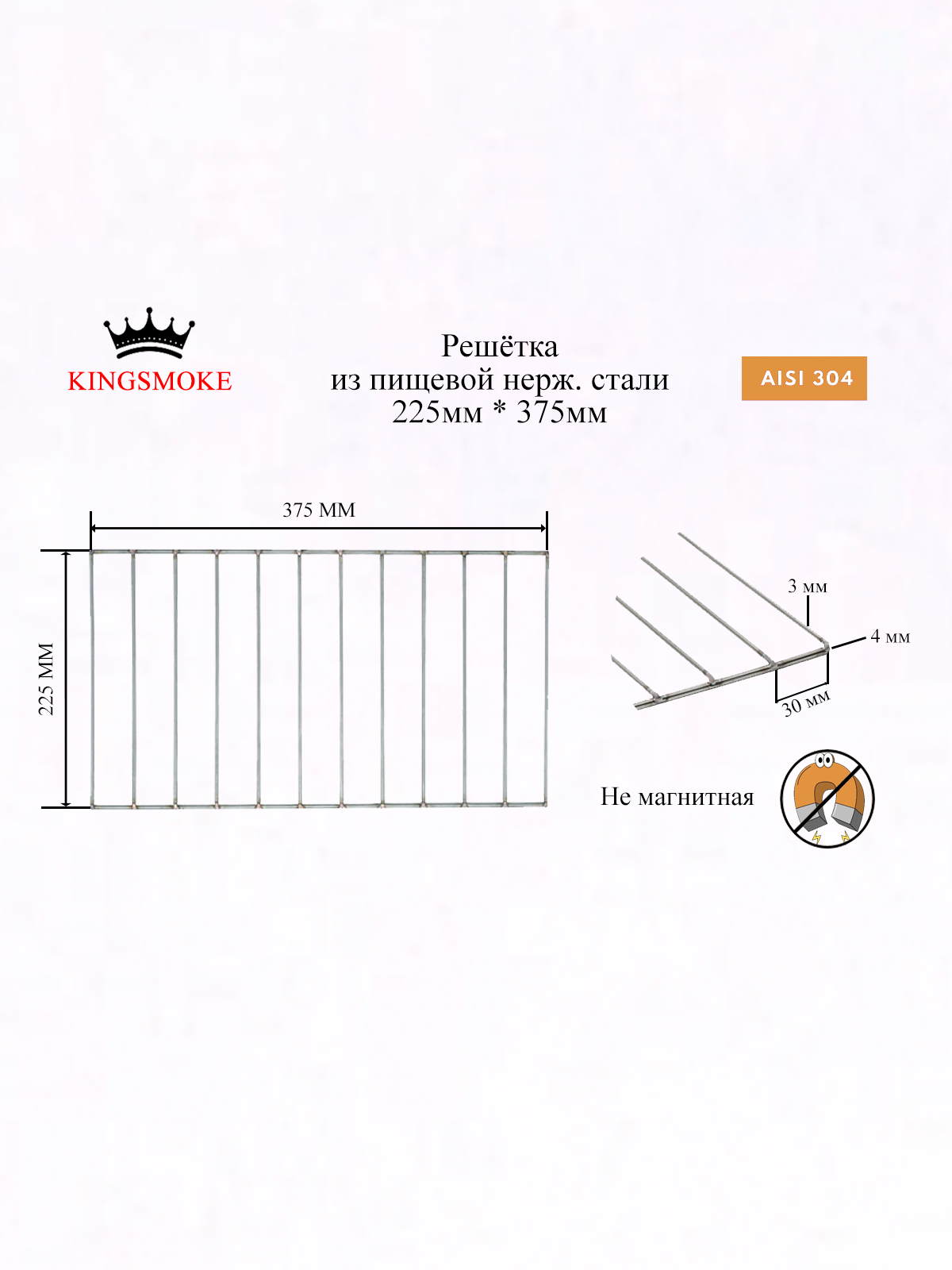 Решетка KINGSMOKE, нержавеющая сталь, 225*375мм, серебристая информация: