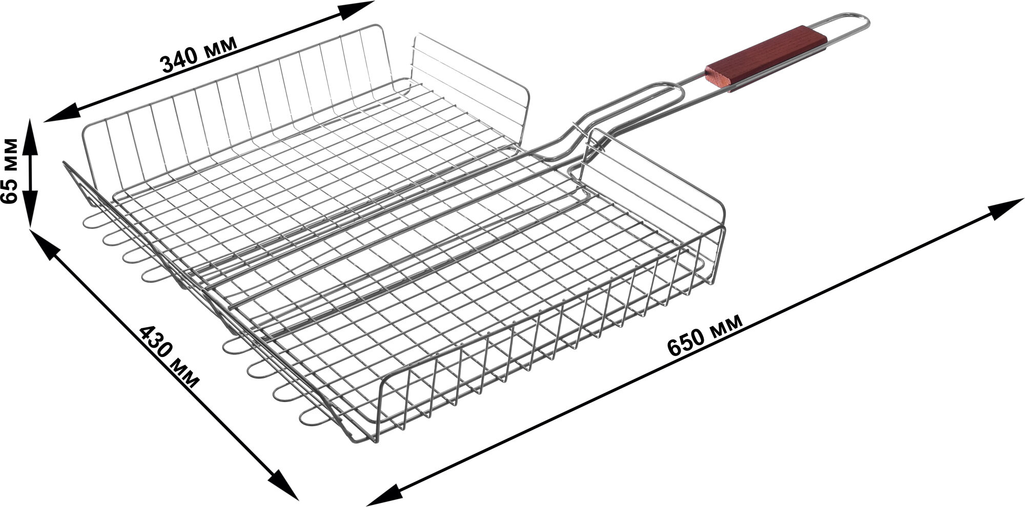 Решетка гриль LESNIKOVA, для птицы, металл, деревянная рукоять, 35x26 см