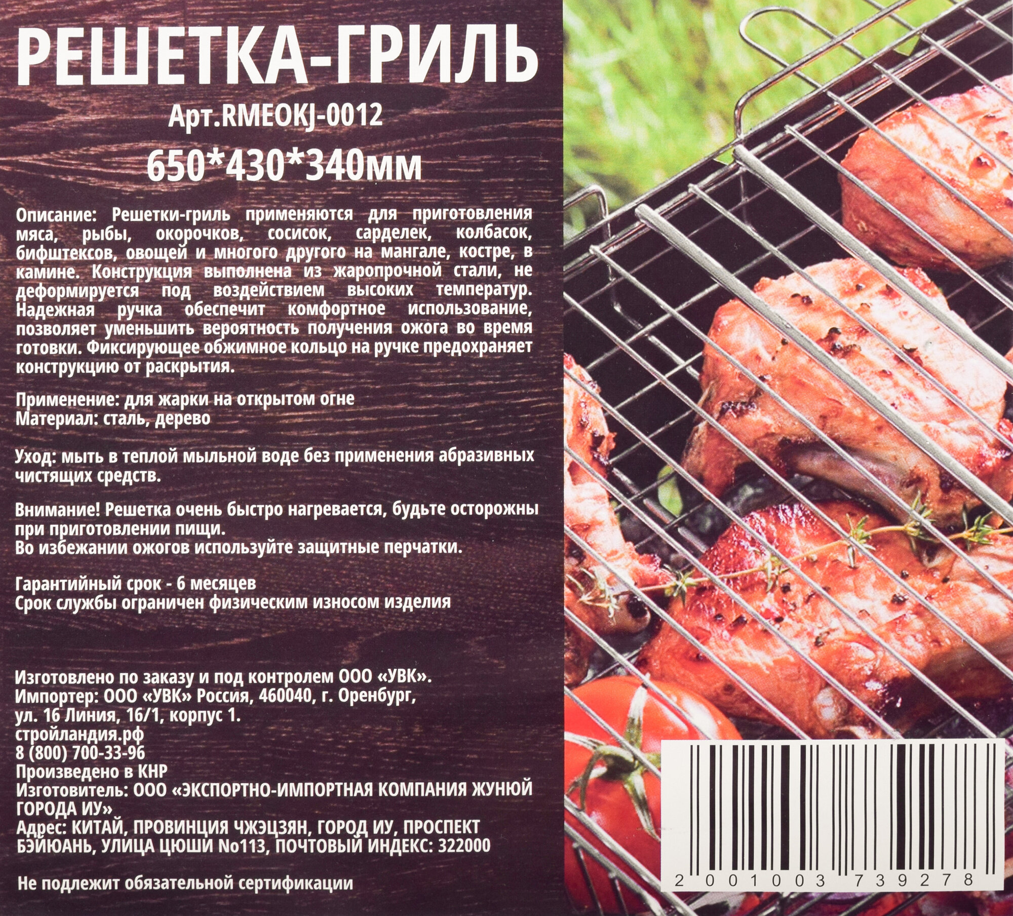 Решетка-гриль RMEOKJ-0012 43*34*6,5см 1 шт информация: