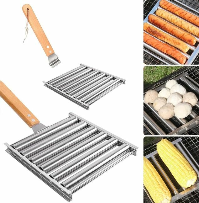 Отзывы на Ролик для сосисок, нержавеющая сталь, с удлиненной деревянной ручкой, вместимостью 5 хот-догов