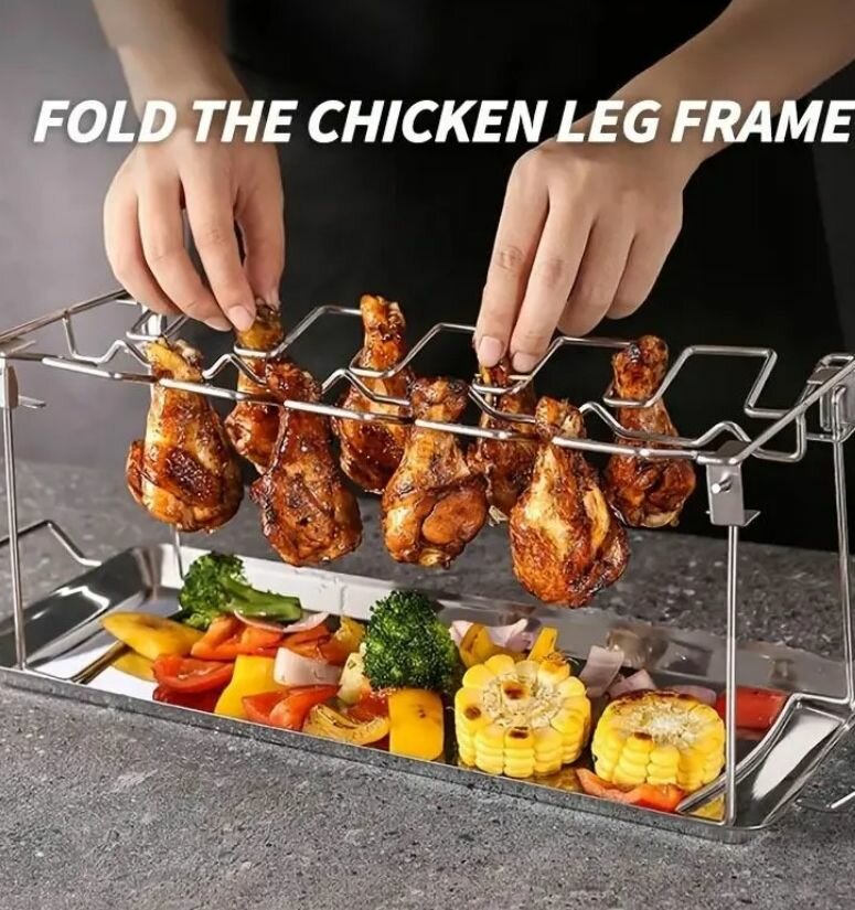 Отзывы на Решетка складная с подносом для куриных ножек и крылышек для гриля, барбекю, духовки (33.8*12.5см)